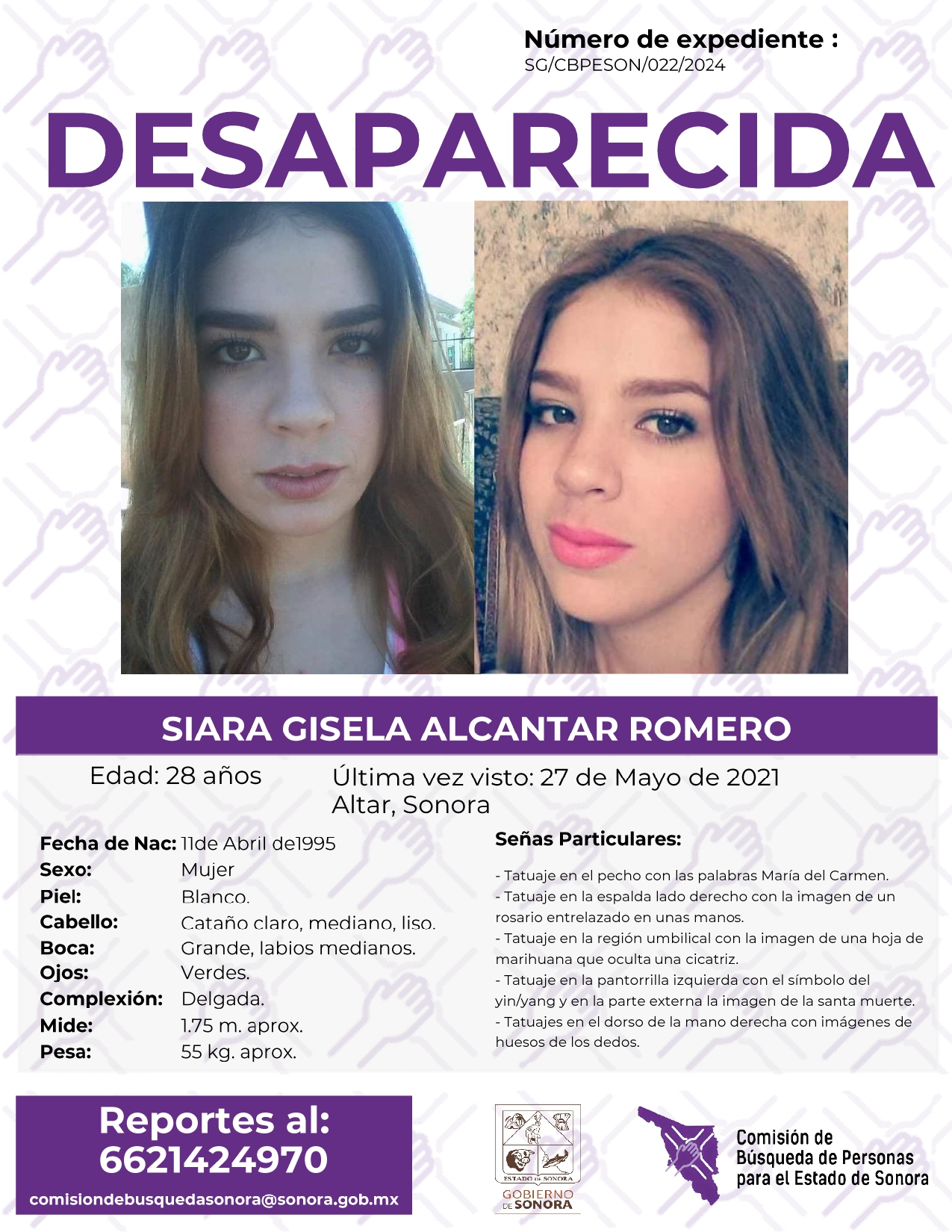 La Comisión de Búsqueda Para el Estado de Sonora solicita apoyo para localizar a SIARA GISELA ALCANTAR ROMERO. Cualquier información, al correo y teléfono: Esta dirección de correo electrónico está siendo protegida contra los robots de spam. Necesita tener JavaScript habilitado para poder verlo. -6621424970 *La información será usada de manera anónima* "Toda persona tiene un hogar, ayudémosle a regresar". #desaparecidos #ComisiónDeBúsqueda #Sonora#AltarSonora