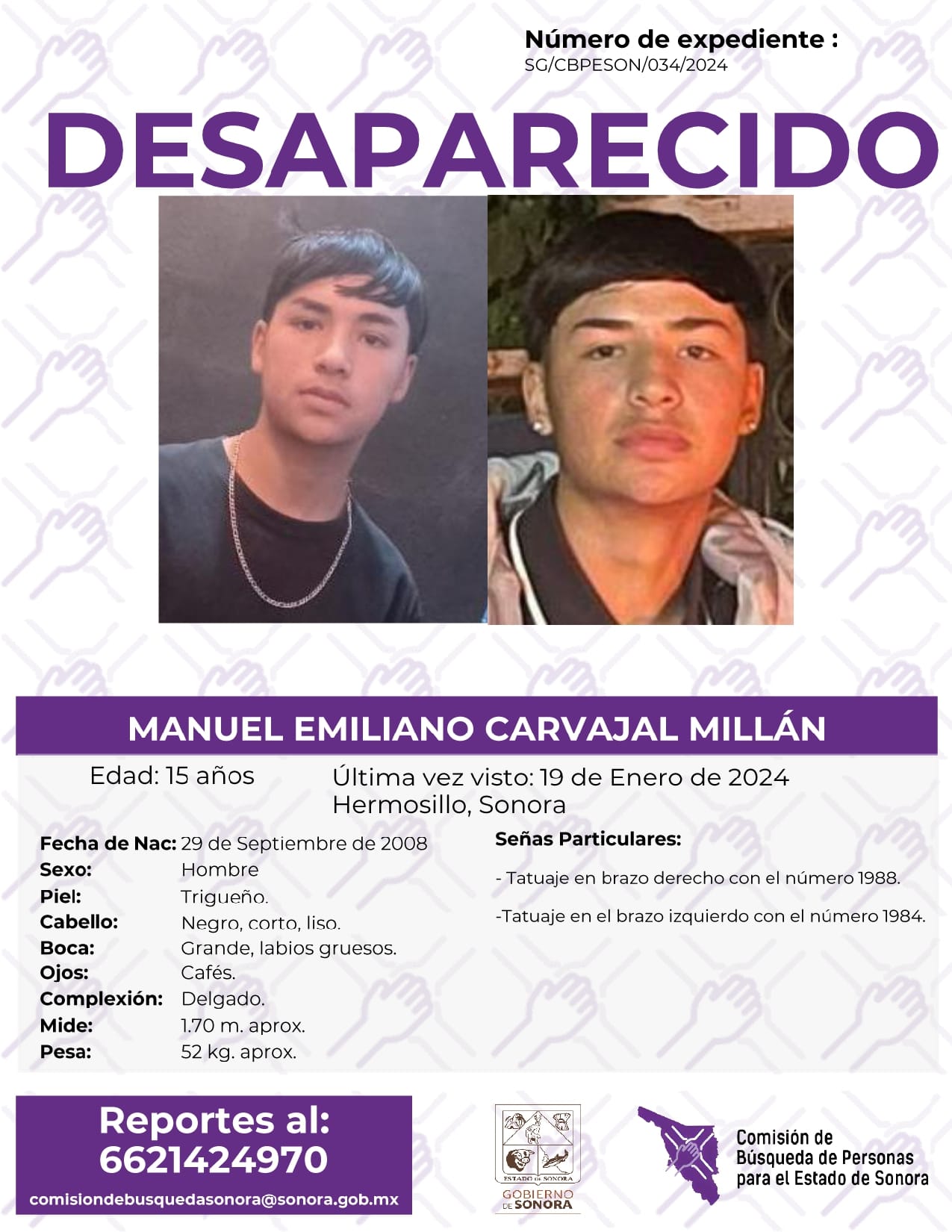 La Comisión de Búsqueda Para el Estado de Sonora solicita apoyo para localizar a MANUEL EMILIANO CARVAJAL MILLÁN. Cualquier información, al correo y teléfono: Esta dirección de correo electrónico está siendo protegida contra los robots de spam. Necesita tener JavaScript habilitado para poder verlo. -6621424970 *La información será usada de manera anónima* "Toda persona tiene un hogar, ayudémosle a regresar". #desaparecidos #ComisiónDeBúsqueda #Sonora#Hermosillo