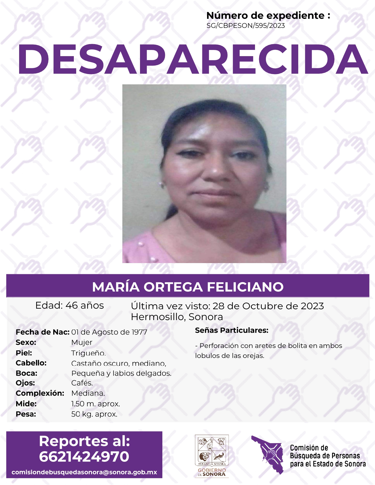 La Comisión de Búsqueda de Personas Para el Estado de Sonora solicita apoyo para localizar a MARÍA ORTEGA FELICIANO. Cualquier información, al correo y teléfono: Esta dirección de correo electrónico está siendo protegida contra los robots de spam. Necesita tener JavaScript habilitado para poder verlo. -6621424970 *La información será usada de manera anónima* "Toda persona tiene un hogar, ayudémosle a regresar". #desaparecidos #ComisiónDeBúsqueda #Sonora#Hermosillo