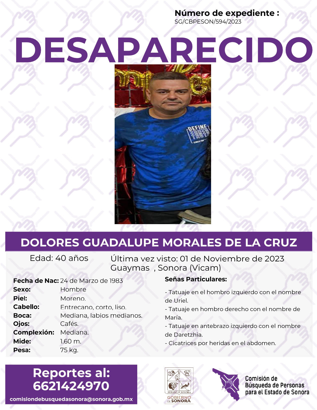 La Comisión de Búsqueda de Personas Para el Estado de Sonora solicita apoyo para localizar a DOLORES GUADALUPE MORALES DE LA CRUZ. Cualquier información, al correo y teléfono: Esta dirección de correo electrónico está siendo protegida contra los robots de spam. Necesita tener JavaScript habilitado para poder verlo. -6621424970 *La información será usada de manera anónima* "Toda persona tiene un hogar, ayudémosle a regresar". #desaparecidos #ComisiónDeBúsqueda #Sonora#Vicam#Guaymas