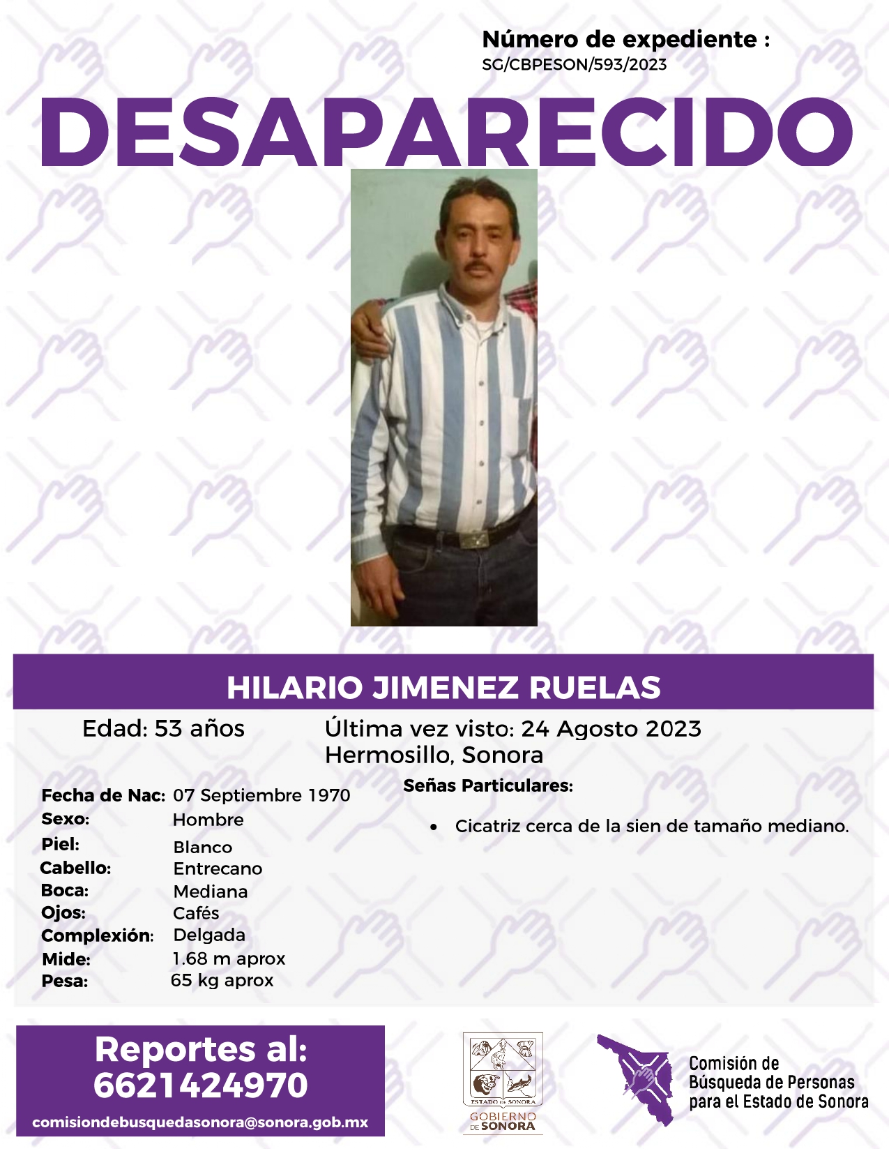 La Comisión de Búsqueda de Personas Para el Estado de Sonora solicita apoyo para localizar a HILARIO JIMENEZ RUELAS. Cualquier información, al correo y teléfono: Esta dirección de correo electrónico está siendo protegida contra los robots de spam. Necesita tener JavaScript habilitado para poder verlo. -6621424970 *La información será usada de manera anónima* "Toda persona tiene un hogar, ayudémosle a regresar". #desaparecidos #ComisiónDeBúsqueda #Sonora#Hermosillo