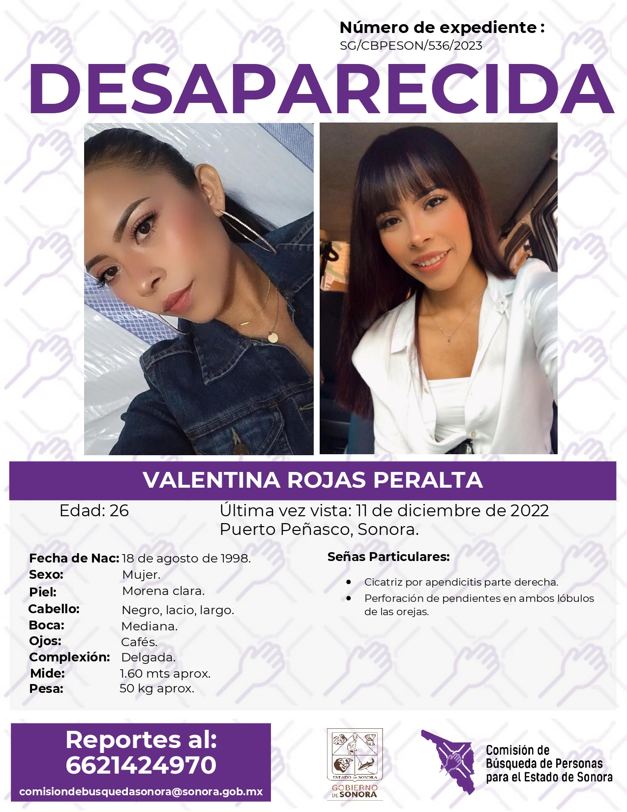 La Comisión de Búsqueda de Personas Para el Estado de Sonora solicita apoyo para localizar a VALENTINA ROJAS PERALTA. Cualquier información, al correo y teléfono: Esta dirección de correo electrónico está siendo protegida contra los robots de spam. Necesita tener JavaScript habilitado para poder verlo. -6621424970 *La información será usada de manera anónima* "Toda persona tiene un hogar, ayudémosle a regresar". #desaparecidos #comisióndebúsqueda