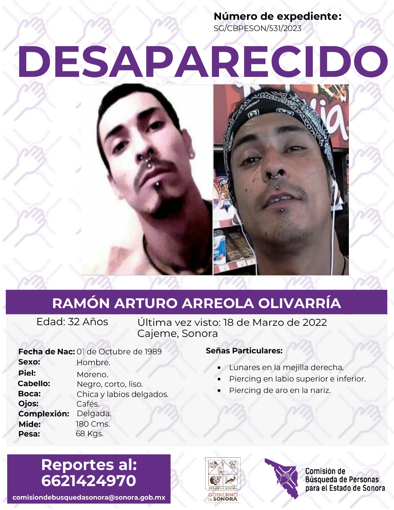 La Comisión de Búsqueda de Personas Para el Estado de Sonora solicita apoyo para localizar a RAMÓN ARTURO ARREOLA OLIVARRIA. Cualquier información, al correo y teléfono: Esta dirección de correo electrónico está siendo protegida contra los robots de spam. Necesita tener JavaScript habilitado para poder verlo. -6621424970 *La información será usada de manera anónima* "Toda persona tiene un hogar, ayudémosle a regresar". #desaparecidos #comisióndebúsqueda