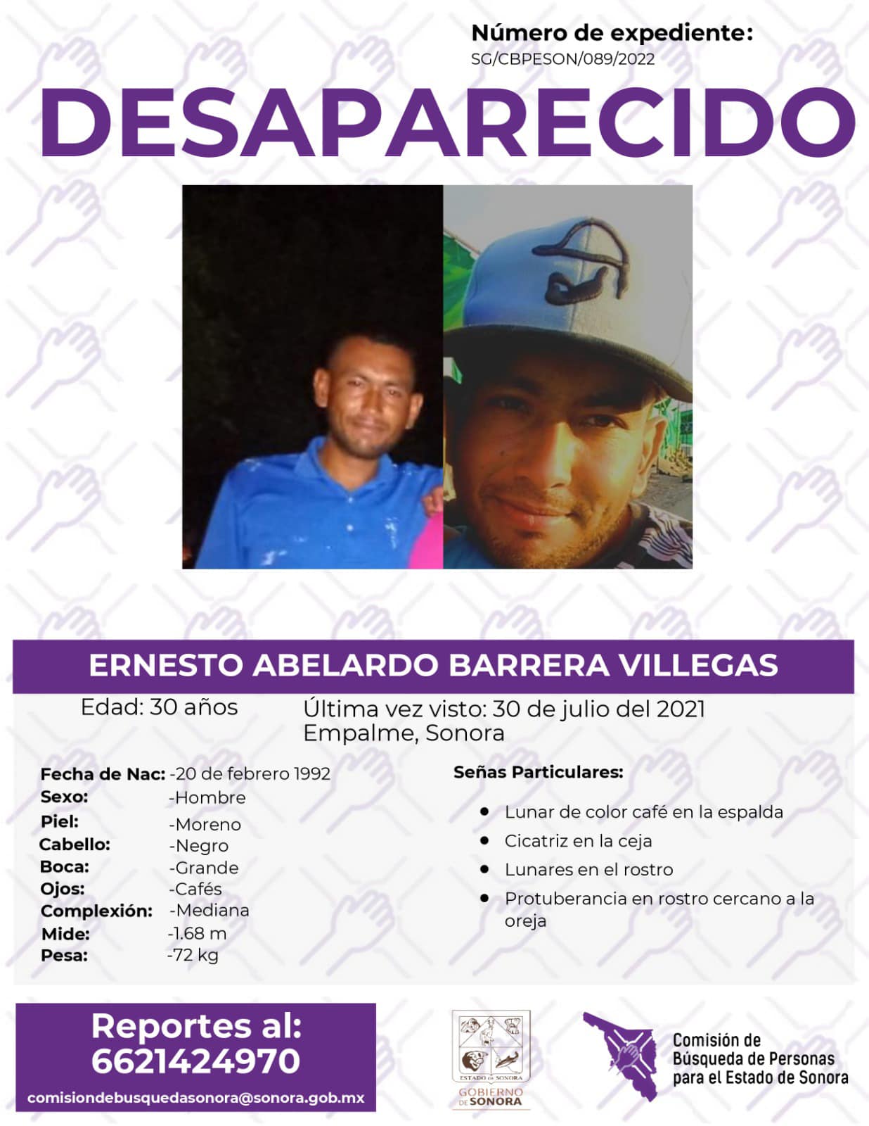 La Comisión de Búsqueda de Personas Para el Estado de Sonora solicita apoyo para localizar a ERNESTO ABELARDO BARRERA VILLEGAS. Cualquier información, al correo y teléfono: Esta dirección de correo electrónico está siendo protegida contra los robots de spam. Necesita tener JavaScript habilitado para poder verlo. -6621424970 *La información será usada de manera anónima* "Toda persona tiene un hogar, ayudémosle a regresar". #desaparecidos #ComisiónDeBúsqueda