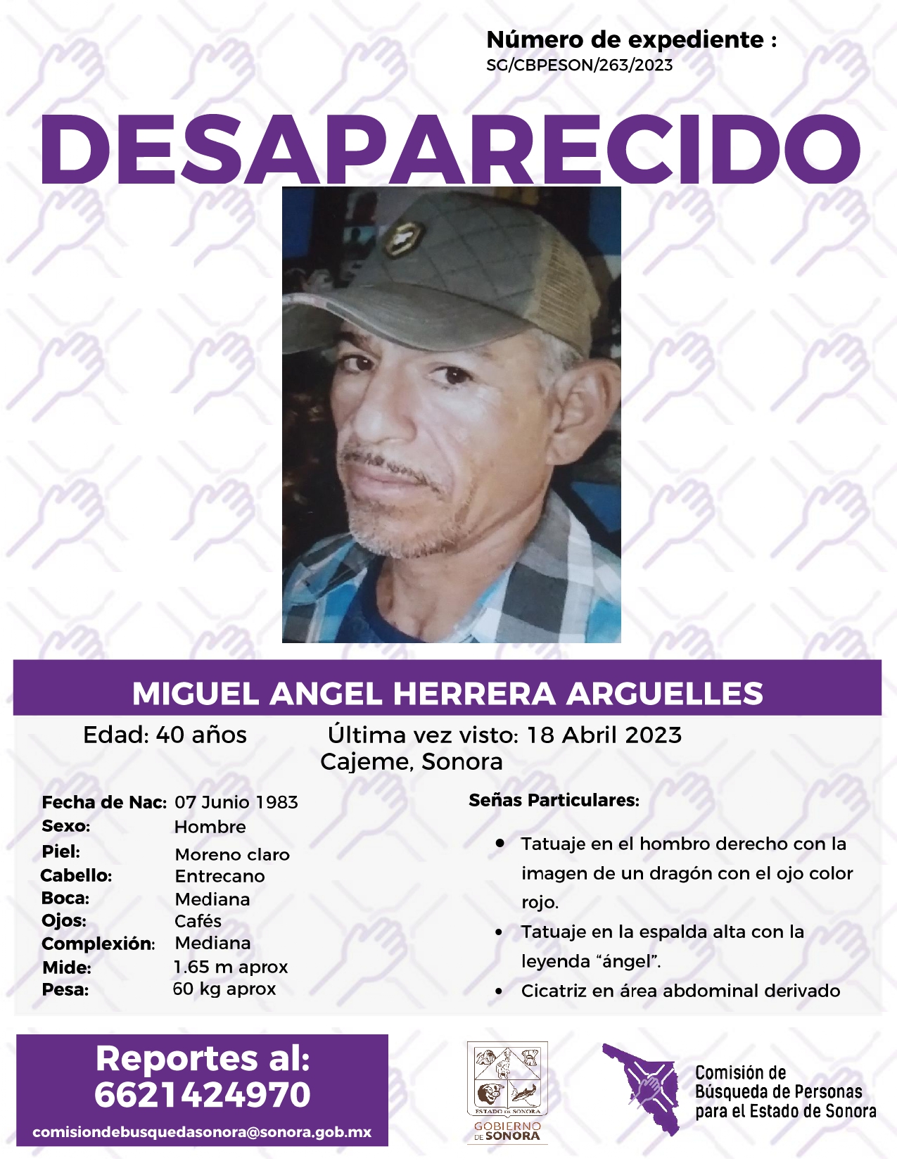 La Comisión de Búsqueda de Personas Para el Estado de Sonora solicita apoyo para localizar a MIGUEL ÁNGEL HERRERA ARGUELLES. Cualquier información, al correo y teléfono: Esta dirección de correo electrónico está siendo protegida contra los robots de spam. Necesita tener JavaScript habilitado para poder verlo. -6621424970 *La información será usada de manera anónima* "Toda persona tiene un hogar, ayudémosle a regresar". #desaparecidos #ComisiónDeBúsqueda