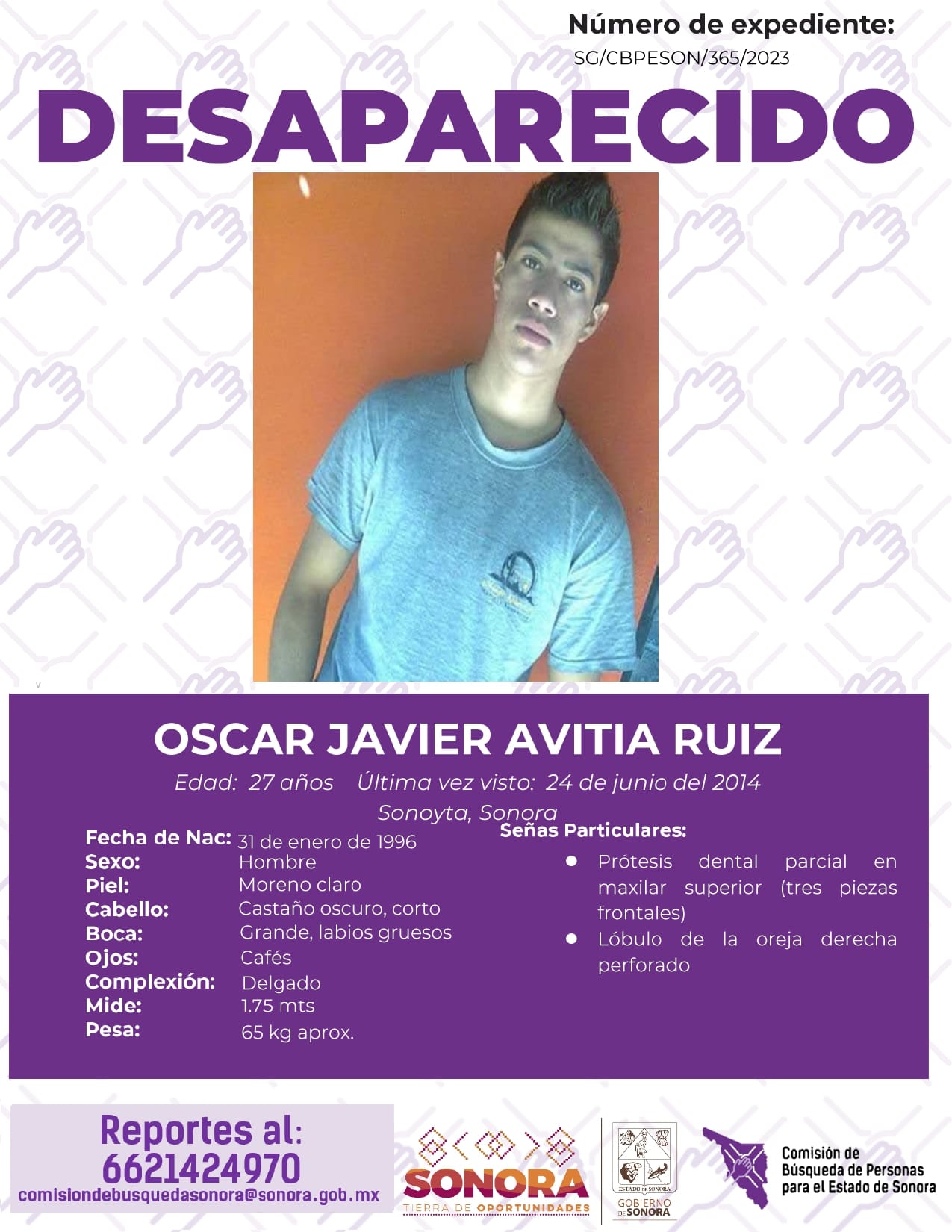 La Comisión de Búsqueda de Personas Para el Estado de Sonora solicita apoyo para localizar a OSCAR JAVIER AVITIA RUIZ. Cualquier información, al correo y teléfono: Esta dirección de correo electrónico está siendo protegida contra los robots de spam. Necesita tener JavaScript habilitado para poder verlo. -6621424970 *La información será usada de manera anónima* "Toda persona tiene un hogar, ayudémosle a regresar". #desaparecidos #ComisiónDeBúsqueda