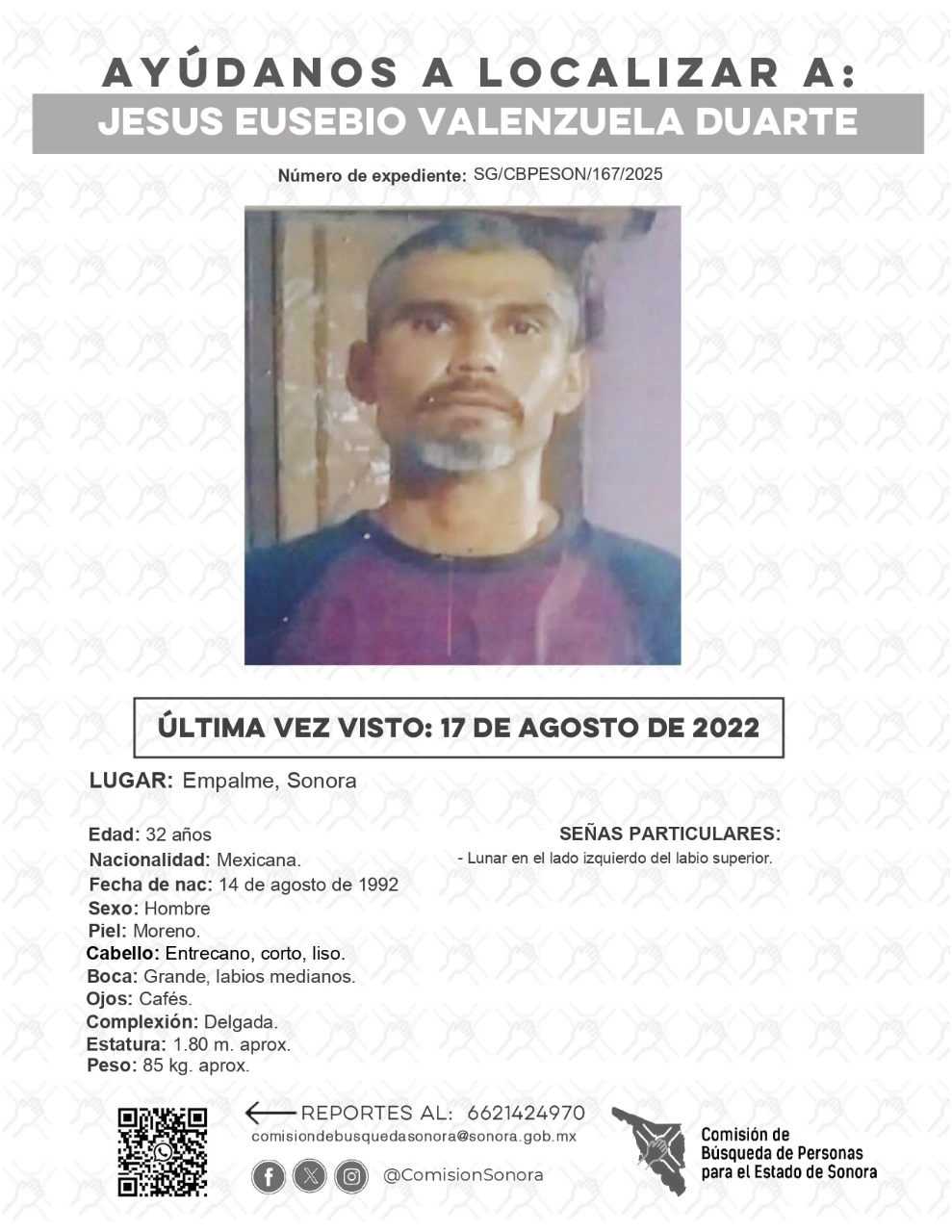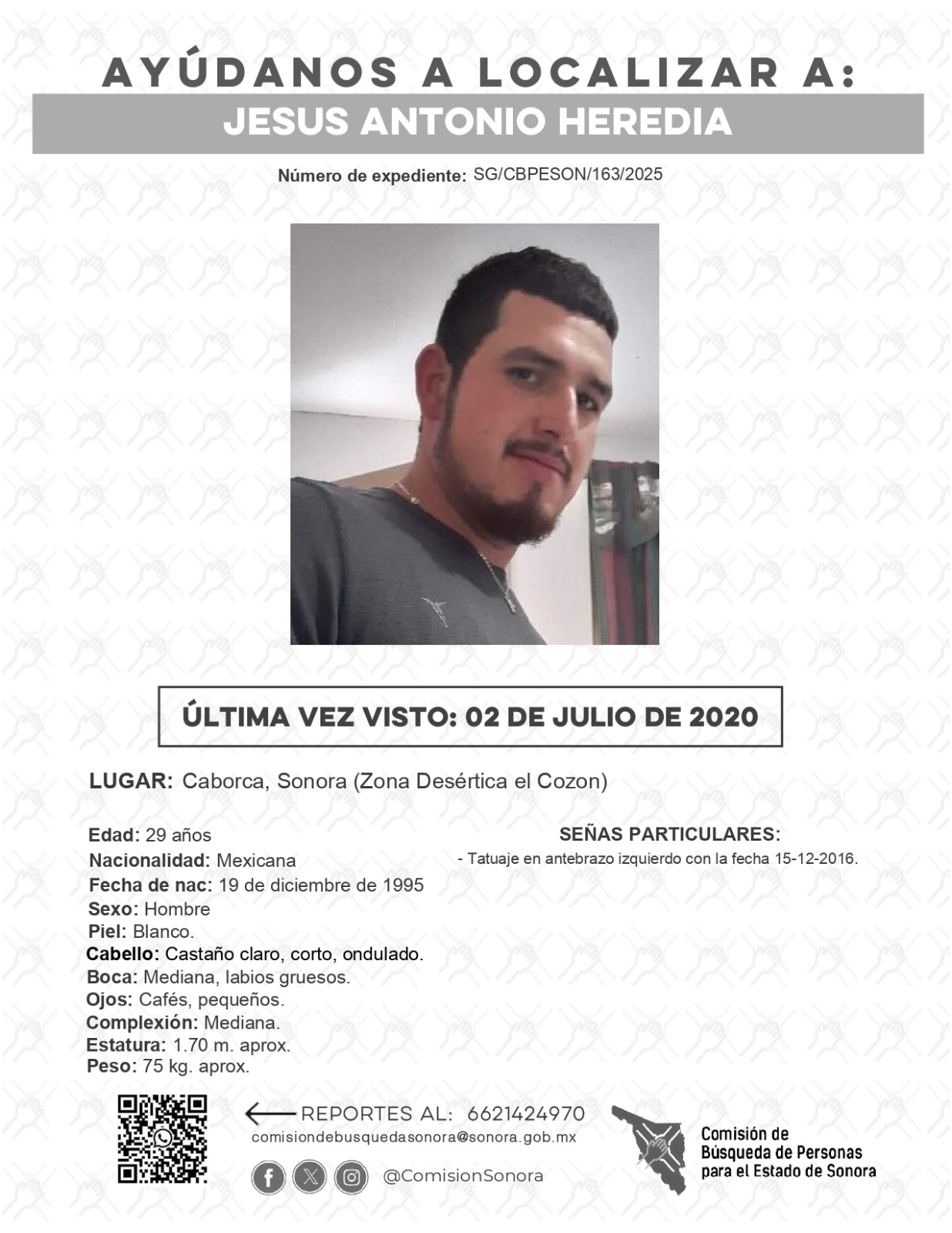 La Comisión de Búsqueda Para el Estado de Sonora solicita apoyo para localizar a JESUS ANTONIO HEREDIA.