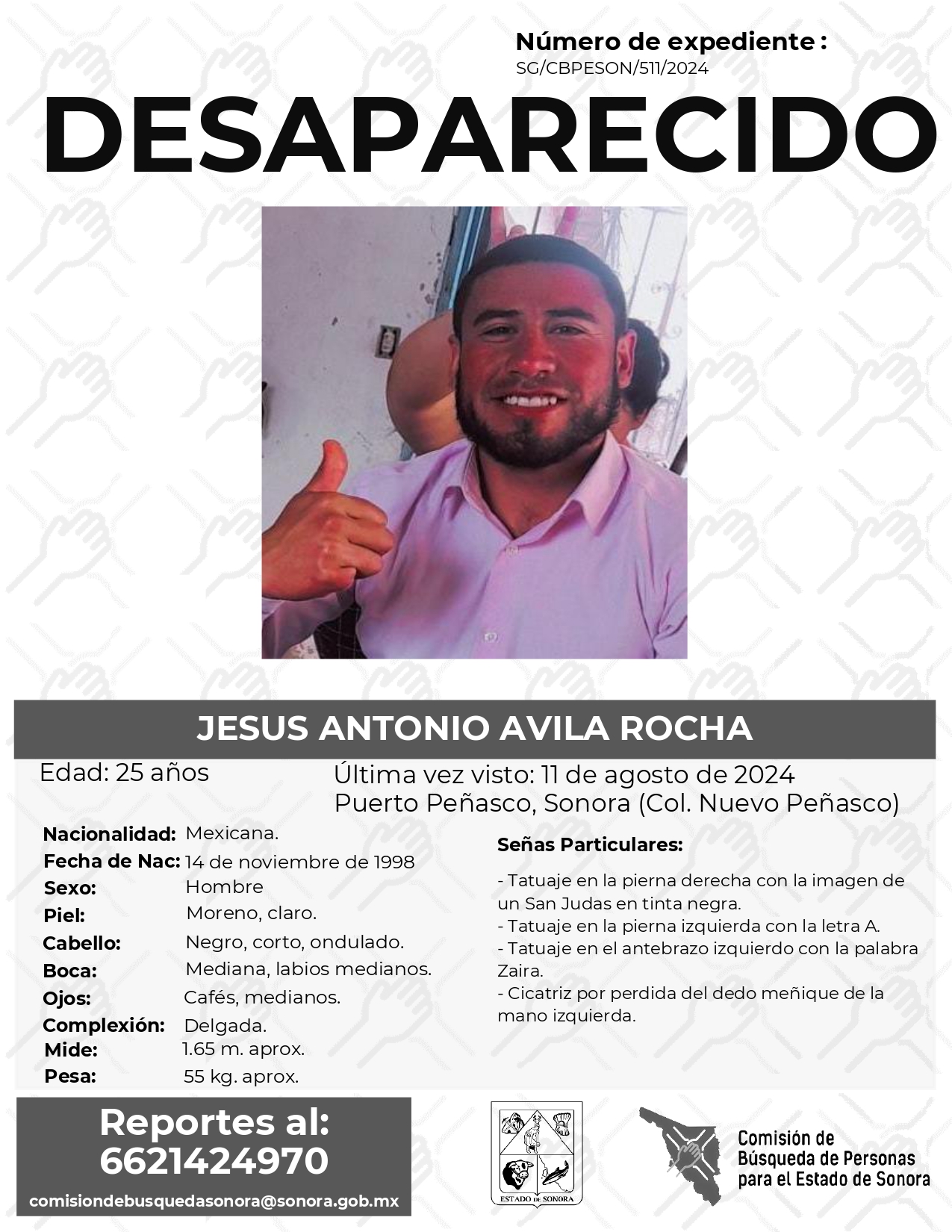 La Comisión de Búsqueda Para el Estado de Sonora solicita apoyo para localizar a JESUS ANTONIO AVILA ROCHA. Cualquier información, al correo y teléfono: Esta dirección de correo electrónico está siendo protegida contra los robots de spam. Necesita tener JavaScript habilitado para poder verlo. -6621424970 *La información será usada de manera anónima* "Toda persona tiene un hogar, ayudémosle a regresar". #Desaparecidos #ComisiónDeBúsqueda #Sonora#PuertoPeñasco