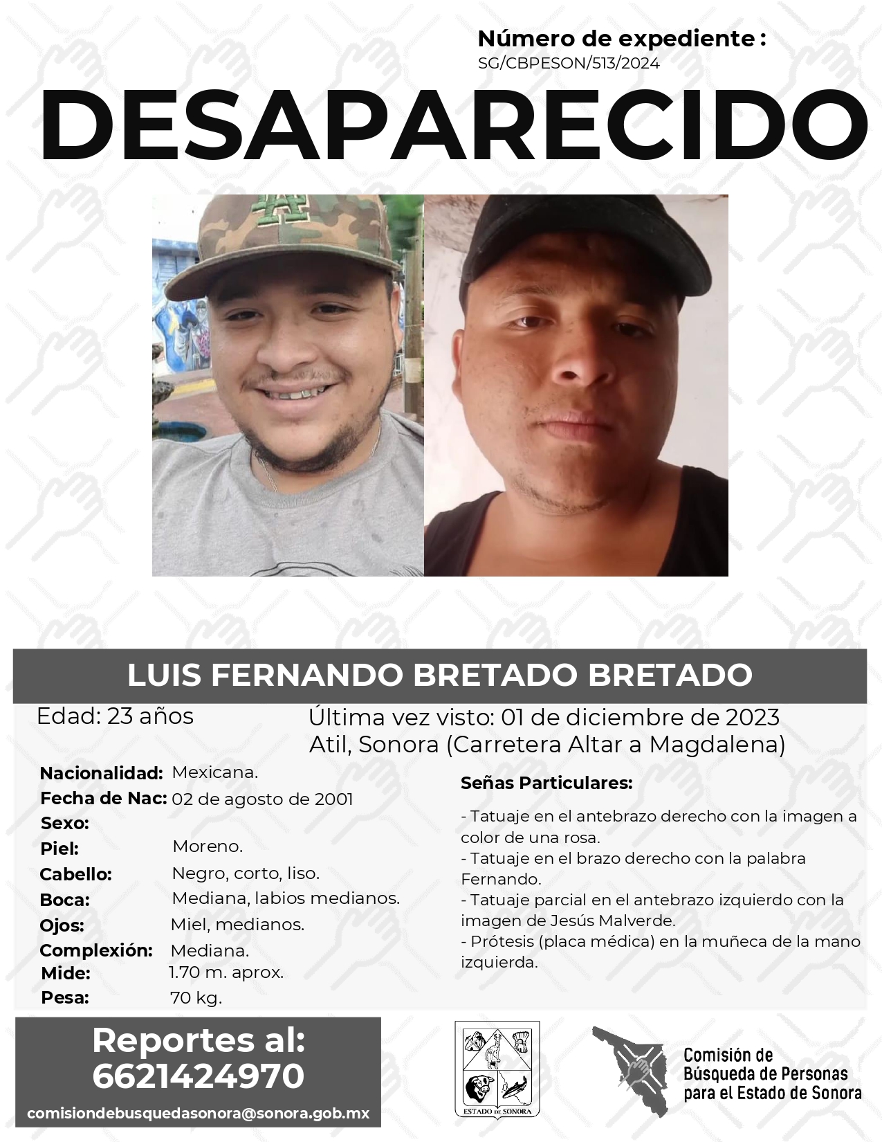 La Comisión de Búsqueda Para el Estado de Sonora solicita apoyo para localizar a LUIS FERNANDO BRETADO BRETADO. Cualquier información, al correo y teléfono: Esta dirección de correo electrónico está siendo protegida contra los robots de spam. Necesita tener JavaScript habilitado para poder verlo. -6621424970 *La información será usada de manera anónima* "Toda persona tiene un hogar, ayudémosle a regresar". #Desaparecidos #ComisiónDeBúsqueda #Sonora#Atil